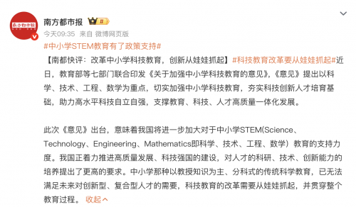 “为什么有些高学历人才,面对‘社区养老政策’却无法分析利弊?”博主贾泽生的疑问,直指应试教育与认知能力脱节的核心——传统教育侧重知识灌输,却忽视了逻辑构建、因果拆解、批判思维等核心认知能力的培养。这种脱节在科技领域尤为明显:许多学生能熟练解答物理公式,却无法独立设计一个简单的实验;能背诵数学定理,却不会用数据解决真实问题。而教育部《加强中小学科技教育意见》提出的“构建STEM体系”“2030年前建立科技素养追踪系统”“禁用单一考试评价创新能力”等政策,正是为了破解这一困境,呼唤更注重实践与逻辑的认知培养模式。